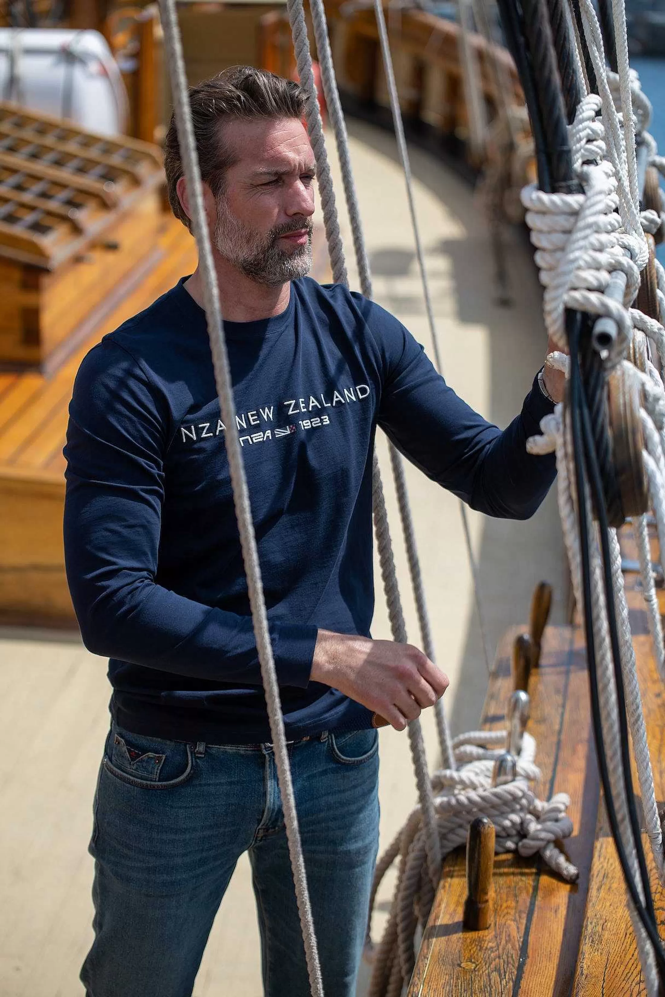 Clearance NZA New Zealand Auckland Langarmshirt Aus Baumwolle-Traditional Navy